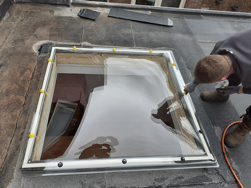Het platdak vervangen met bitumen, inclusief hemelverlichting Vlijmen
