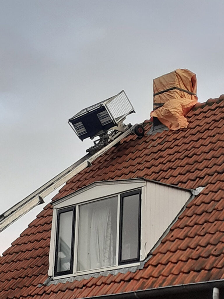 Schoorsteen verwijderd in Hendrik Ido Ambacht   In sommige gevallen is de schoorsteen niet meer te redden. De goedkoopste manier om dan van de lekkage af te komen is om de schoorsteen te verwijderen. Een baksteen werkt als een soort spons. Deze zuigt het regen water op en vervolgens ademt hij deze weer uit.