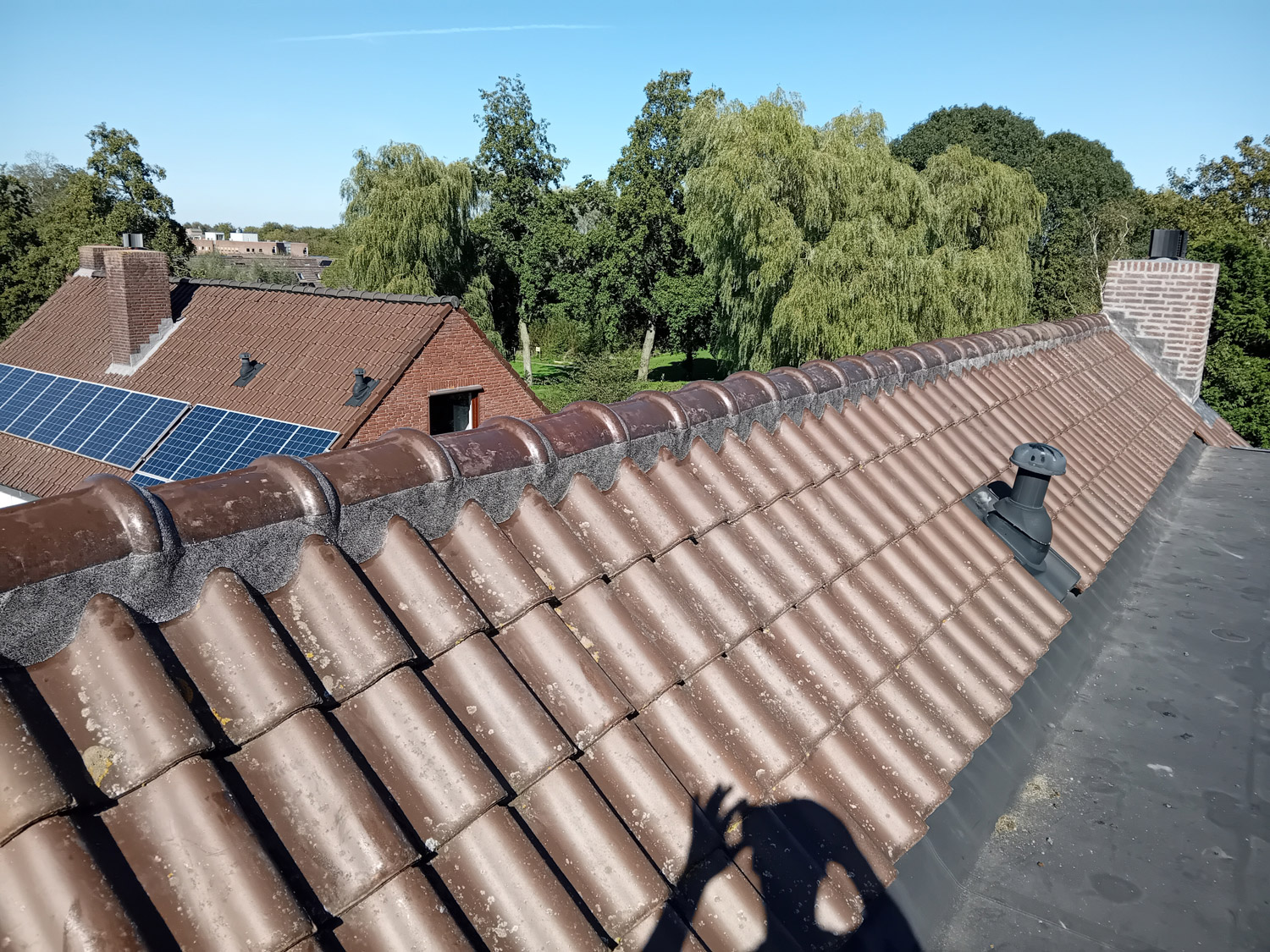 We controleren dakpannen, nokvorsten en loodwerk en herstellen schade.